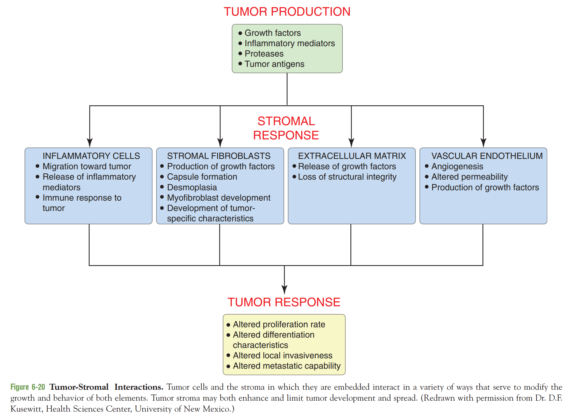 - tumor = tumor cells proper(=parenchyma) + nonneoplastic supporting structure(=stroma)