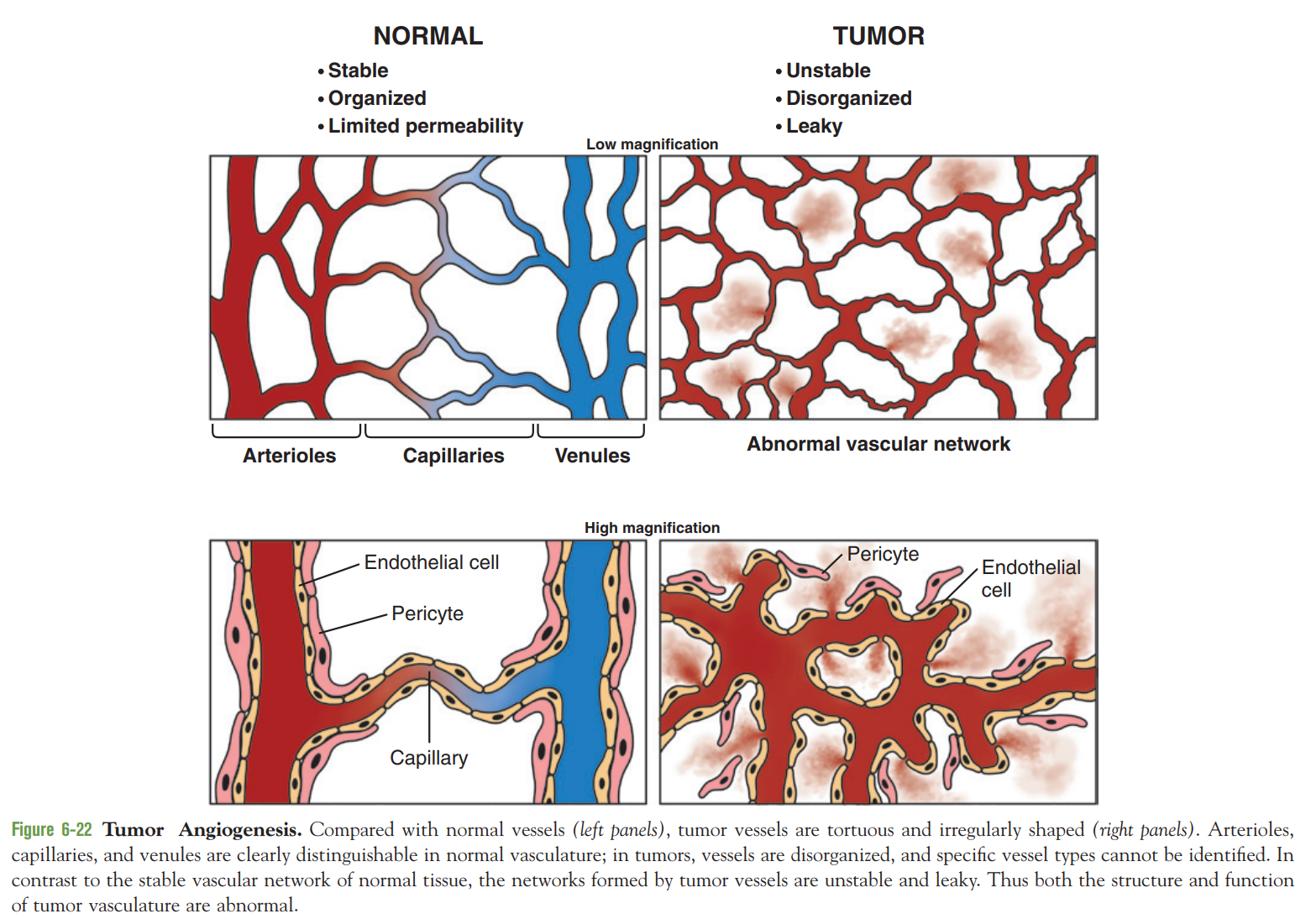 - ์ด๋ ๊ฒ ๋ง๋ค์ด์ง tumor blood vessels๋ ๊ทธ๋ฅ ํ๊ด๋ณด๋ค more dilated, tortuous(๊ผฌ๋ถ๊ผฌ๋ถ), permeable(ํฌ๊ณผ๋๊ฐ ๋์ ๋ฌผ์ง ์ด๋ ๋ฐ ์ถํโ)