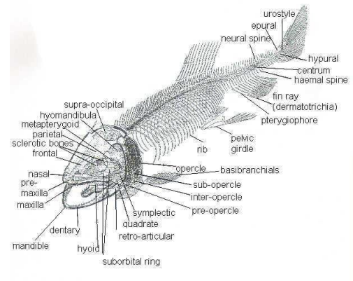 - ๋จธ๋ฆฌ : ์ ๋๋ถํฐ ์๊ฐ๋ฏธ๋ฎ๊ฐ๊น์ง / ์ธก์ (lateral line), ์๊ฐ๋ฏธ ๋ฑ ํฌํจ