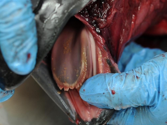 - 혀 바닥 주름 : 혀가 어미의 유두를 말아서 먹을 때, 혀주름이 젖이 새지 않도록 도와줌, 이 구조물이 명확히 보이면 새끼고래