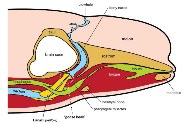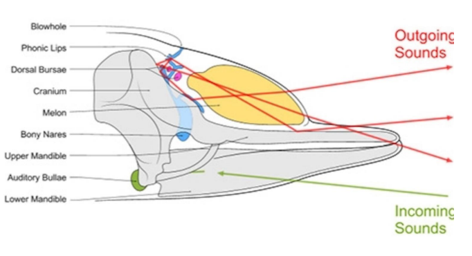 Melon : 머리 앞쪽 지방으로만 이루어진 구조물. 초음파를 확장. 초음파가 melon이라는 지방층을 통과하면서 확장됨