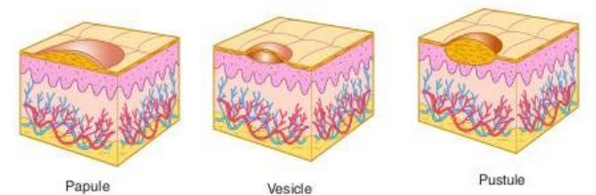 - ์ฒ์์๋ papule โ ์ ์ ์ปค์ง๋ค๊ฐ ์์์ง, ๋ช ์ฃผ๊ฐ ์ง์.