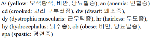- 유전적 특성이 유전자로 표시되는 경우 유전자 기호 사용