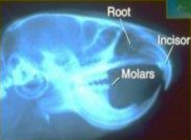 - 새끼 햄스터에서 이미 절치가 나 있음. 이미 다 성장한 채로 나옴.