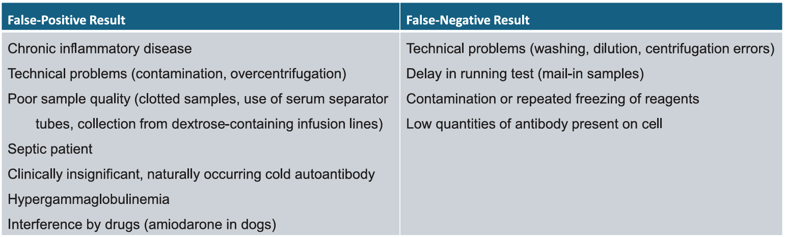 Coombs test에서 위양성, 위음성 나오는 경우