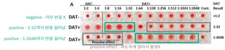 - (양성 = RBC membrane에 문제될 만큼 충분한 양의 항체 존재)