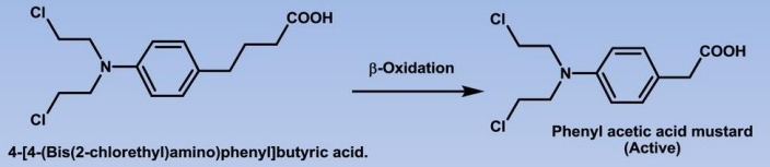- 대사체인 phenyl acetic acid mustard가 치료 효과를 나타냄.