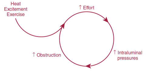Increassed respiratory effort : 운동, 흥분, 더운 환경에서 숨을 빠르게, 더 많이 쉬려고 함 → 호흡 어려워짐