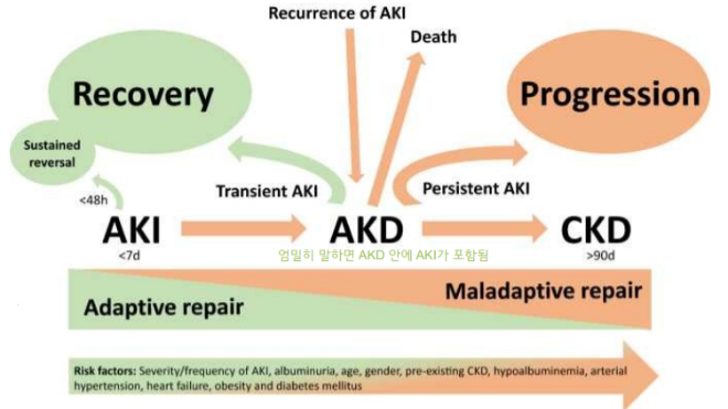 - AKI์์ 5-60%๊น์ง ๊ฐ์ ๋ ๊ฒฝ์ฐ, ์ ์์ผ๋ก ๋์์จ ๊ฒ์ด ์๋๋ผ CKD 1๊ธฐ ์ ๋๋ก ๋ด. ์ ์ ๊ฐ์ฒด๋ณด๋ค ์งํ์ ๊ฐ๋ฅ์ฑ์ด ๋์.