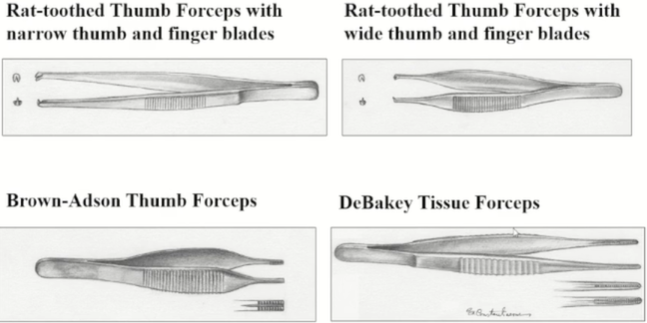 - Rat-toothed thumb forceps : 피부 손상이 높아서 요즘 잘 사용되지 않음.