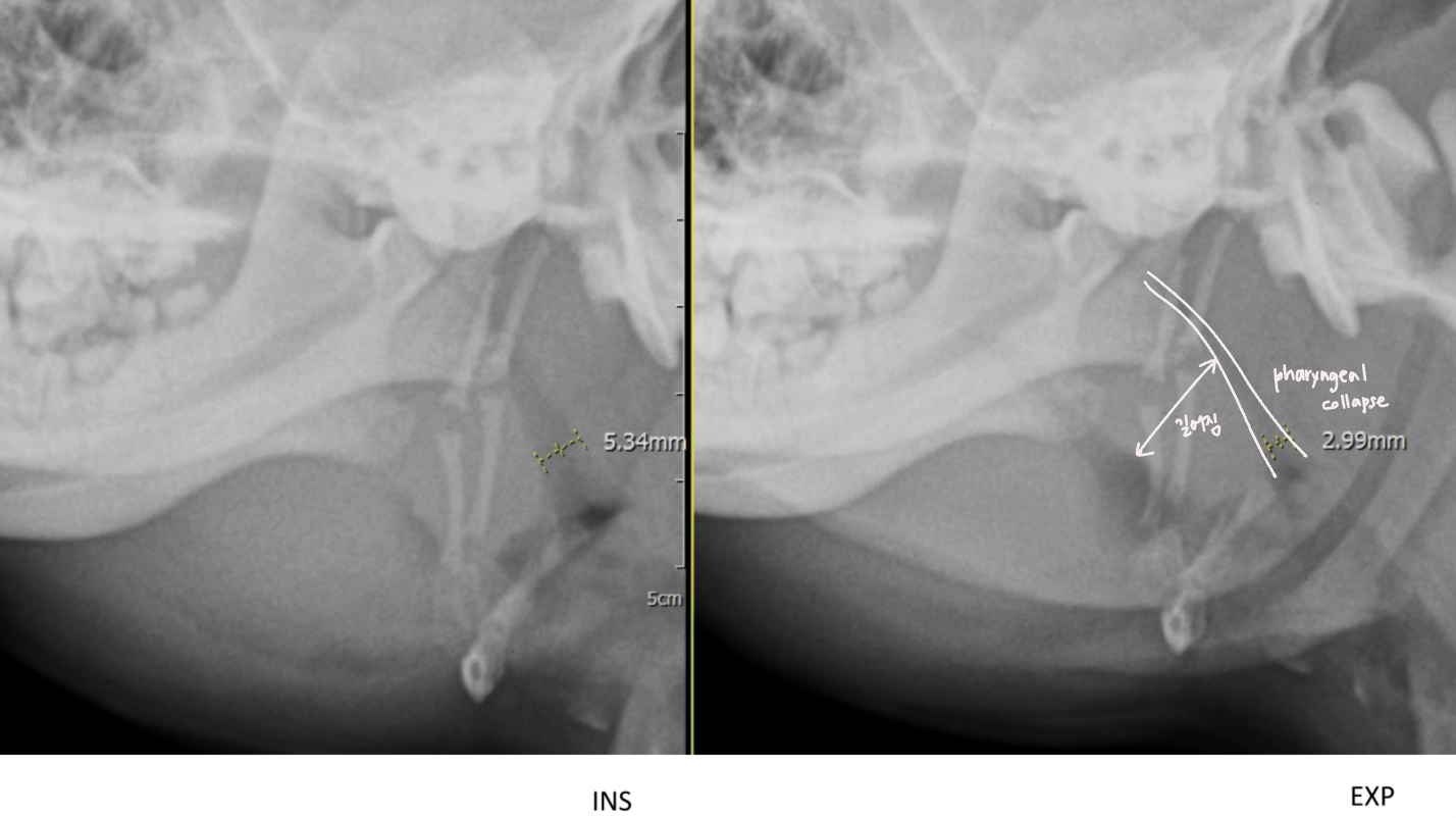 | Pharyngeal collapse : ํธ๊ธฐ ๋ ์ข์์ง - ์ฆ์์ ํก๊ธฐ์์ ๋ ์ฌํจ (ํก๊ธฐ์ฑ ํธํก๊ณค๋) ![]() ![]() |