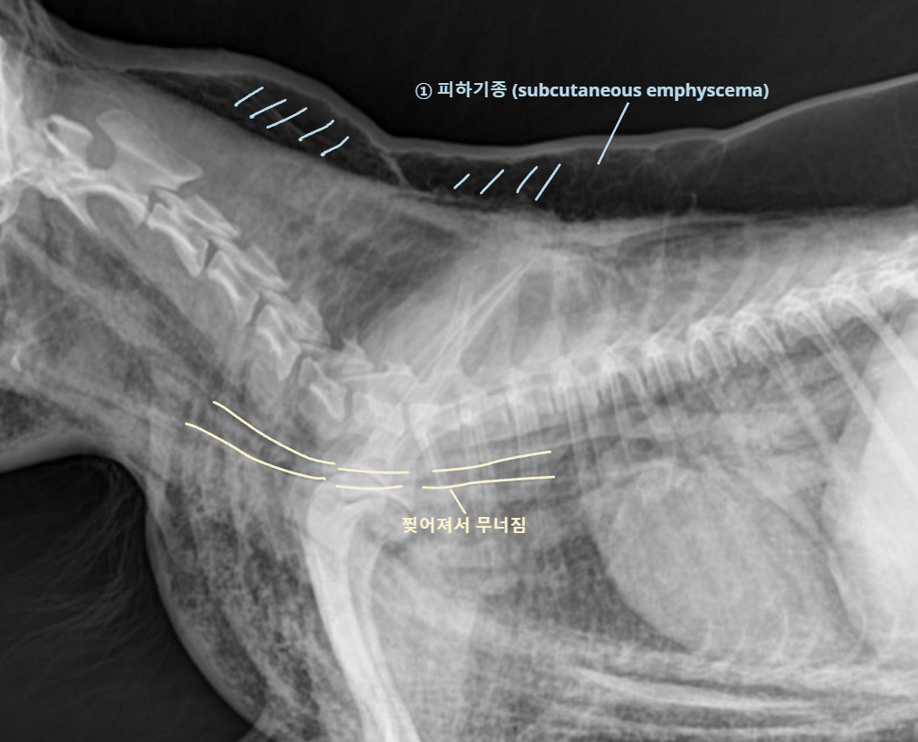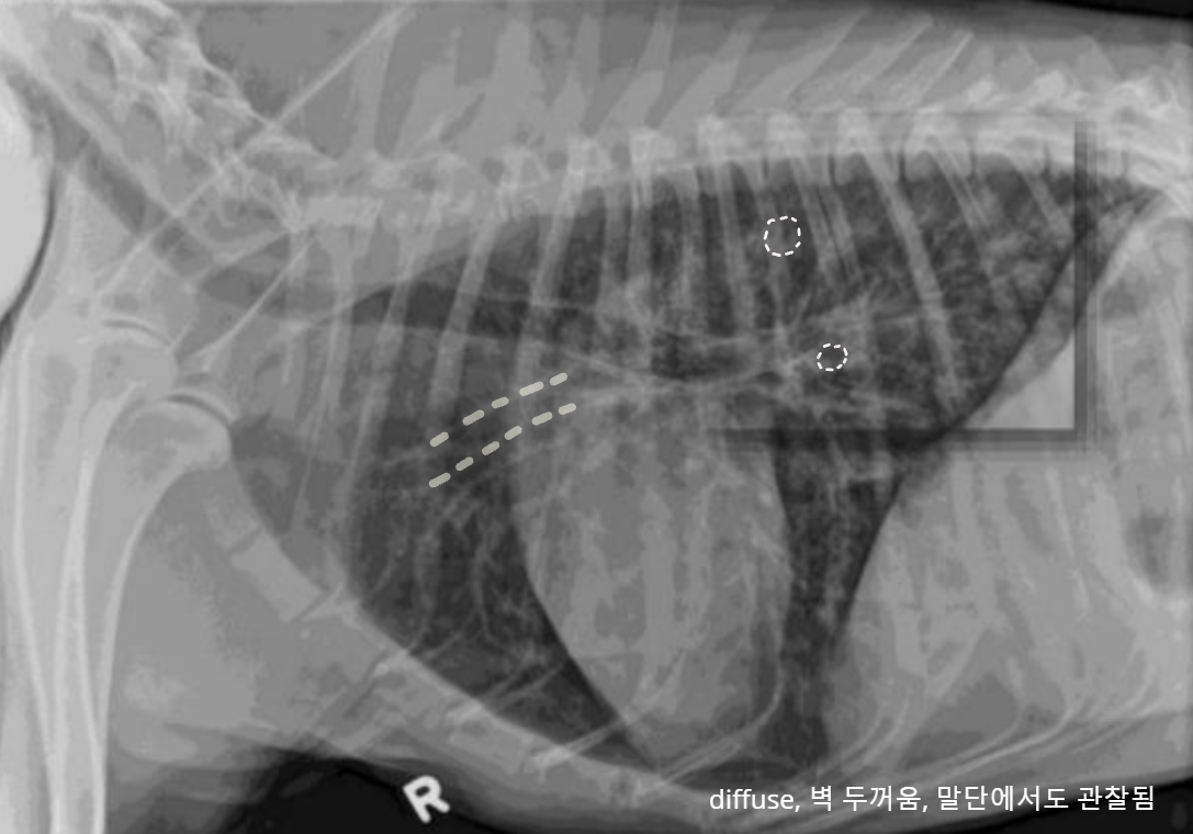 | ์ผ์ฆ ์ธํฌ ์นจ์ค์ผ๋ก ๊ธฐ๊ด์ง๋ฒฝ ๋๊บผ์์ง - Doughnut sign : end-on - Tramline sing : side-on ์์ธ - Bronchitis (๋ง์ฑ) - Allergic (Feline asthma, ์๋ฌ์ง์ฑ ํ๋ ด) - Immune-mediated (PIE) ์ฃผ์ - ๋ณด์ธ๋ค๊ณ ํด์ ๋ฌด์กฐ๊ฑด ์ง๋ณ์ X - ๋ง๋จ์์ ๋ค์ ๊ด์ฐฐ๋๋ฉด ์ง๋ณ ๊ฐ๋ฅ์ฑ โ | ![]() ![]() |