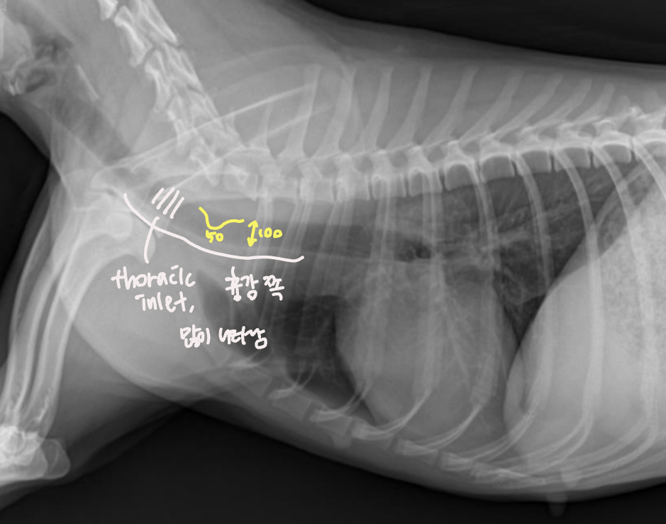- Thoracic inlet๊ณผ์ ๋น์จ๋ก ๋ํ๋ธ๋ค.