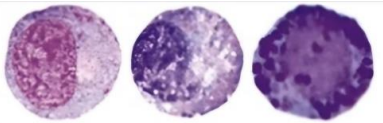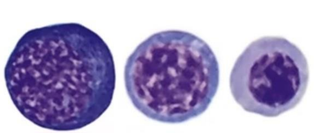 - ์ฑ์ํ ์๋ก ๋ ํฐ ํฌ๊ธฐ๋ก ์กด์ฌ, ์ฑ์ํ ์๋ก basophilic