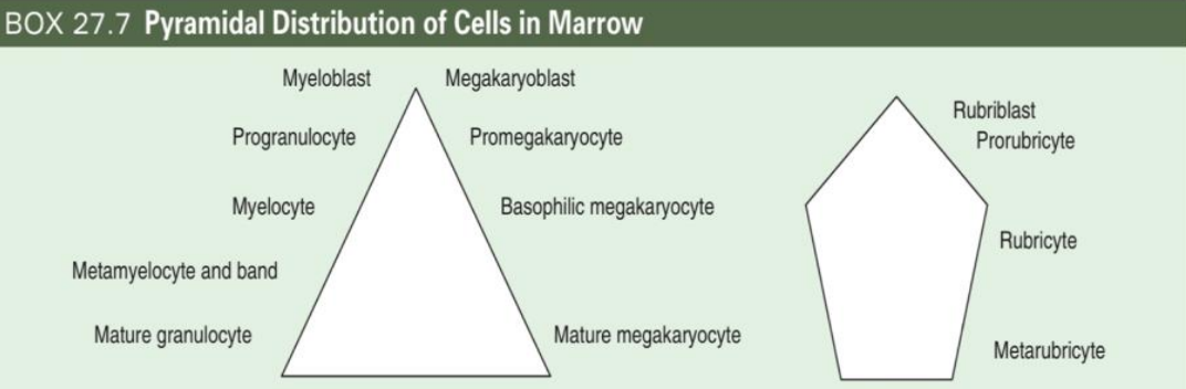 - Myeloblast < Mature granulocyte