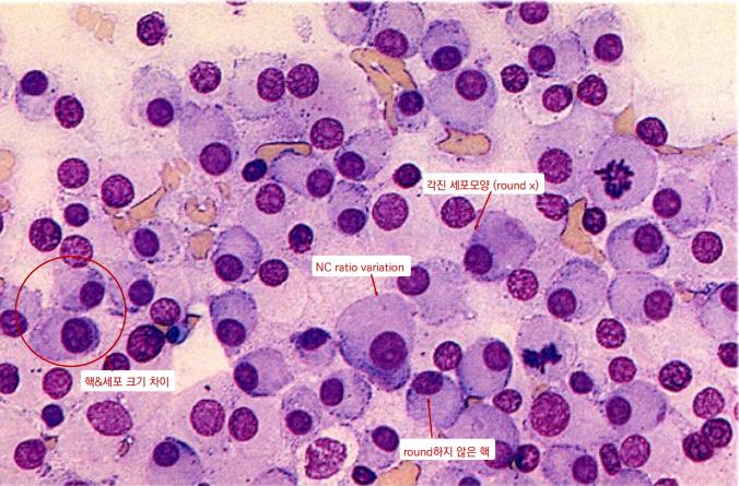 - ์ธํฌ ์ถฉ์ค๋ ํ๋จ์๋ aspirate๋ณด๋ค core biopsy๊ฐ ์ ๋ฆฌํ๋ค.