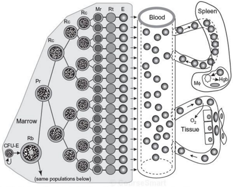 * BFU-E : blast-forming unit-eythroid - Erythropoiesis๋ hematopoiesis ์ค ํ๋๋ก ํฌํจ๋๋ค.