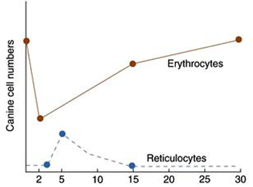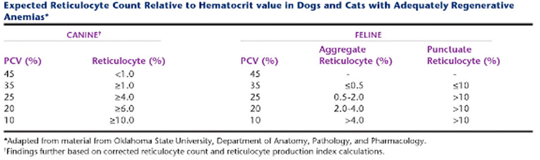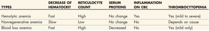| Regenerative anemia (์ฌ์์ฑ ๋นํ) | Nonregenerative anemia (๋น์ฌ์์ฑ ๋นํ) |