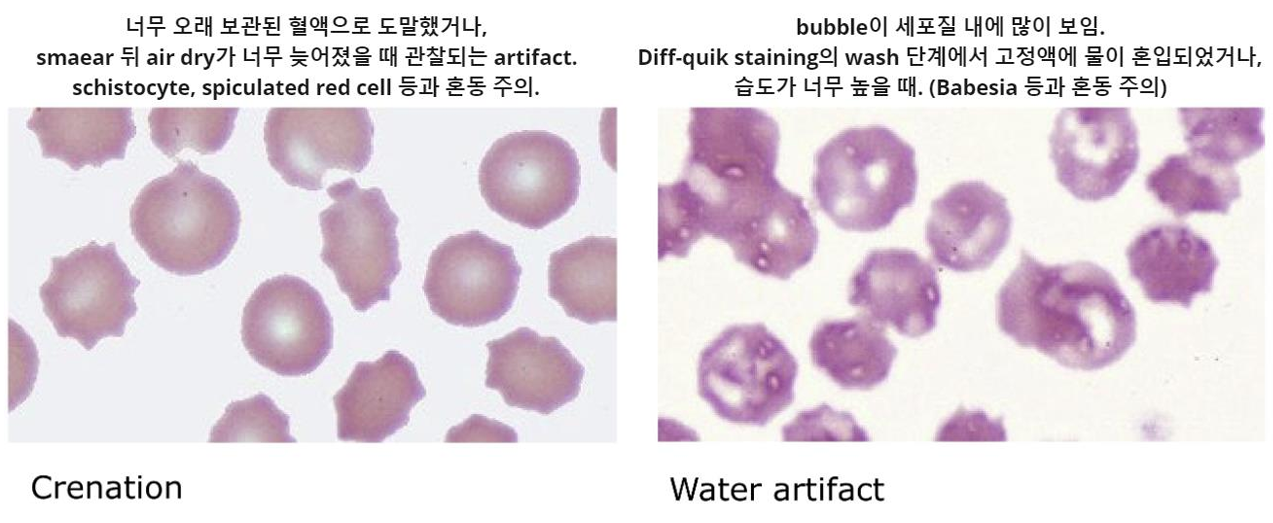 - ๊ฐ์ ๊ณ ์์ด์์, ๋นจ๊ฐ ๋ค๋ชจ์ ๋ ์ธํฌ(Reticulocytes & Mature RBCs)๋ ์ํ ํ์ค์์๋ ๊ด์ฐฐ๋ ์ ์๋ค.