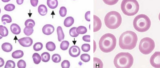 Target cells, Codocytes![]() | - central pallor๊ฐ ์๋ก ์์์, ์ง์ง ๊ณผ๋