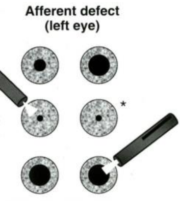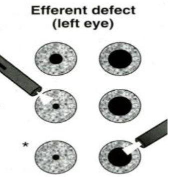 | Efferent defect | (์๊ทน O ๋ฐ์ X) |