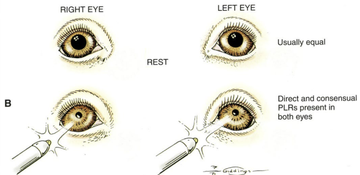 ์๋ค๊ฐ๋ค ํ๋ฉด์ ํ์ธํ๋ Consensual ๋ฐฉ๋ฒ์ด ์๊ณ , ์๊ทน๋ฐ์ง ์์ ๋ฐ๋์ชฝ ๋์ ๊ฒ์ฌํ๋ Indirect ๋ฐฉ๋ฒ์ด ์์.