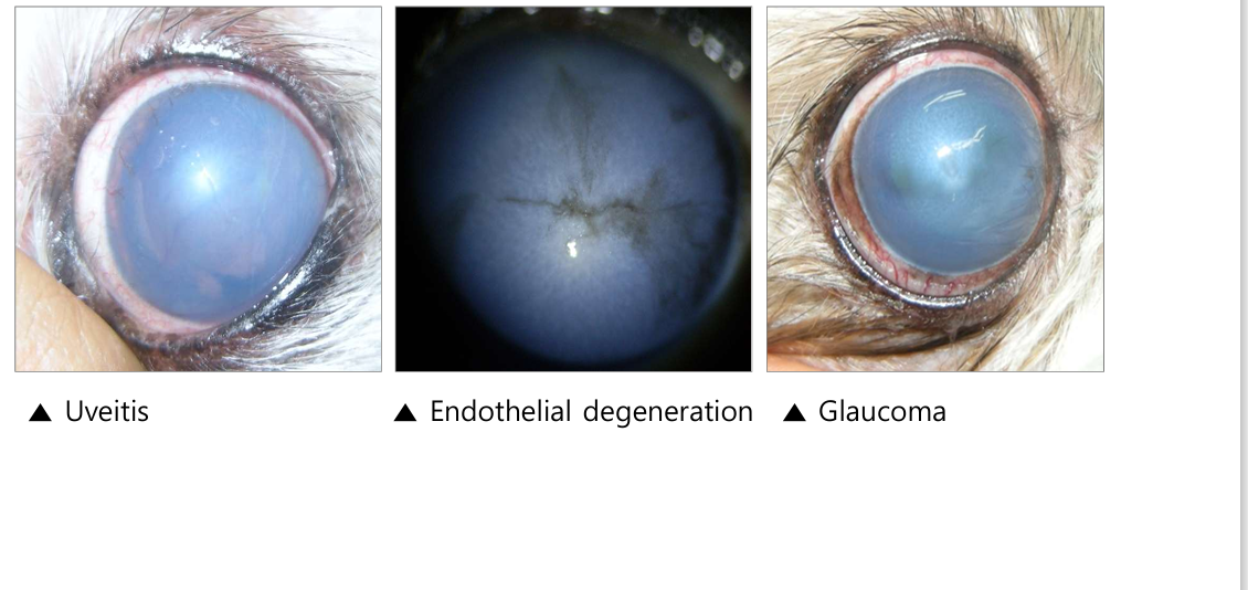 - 각막의 endothelium이 적거나, 떨어져 나가거나,