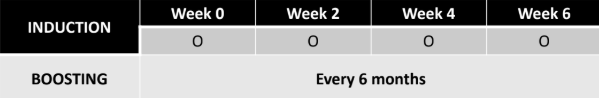 - Dosing : 2์ฃผ ๋จ์๋ก 4๋ฒ Induction โ 6๊ฐ์์ 1๋ฒ Boosting