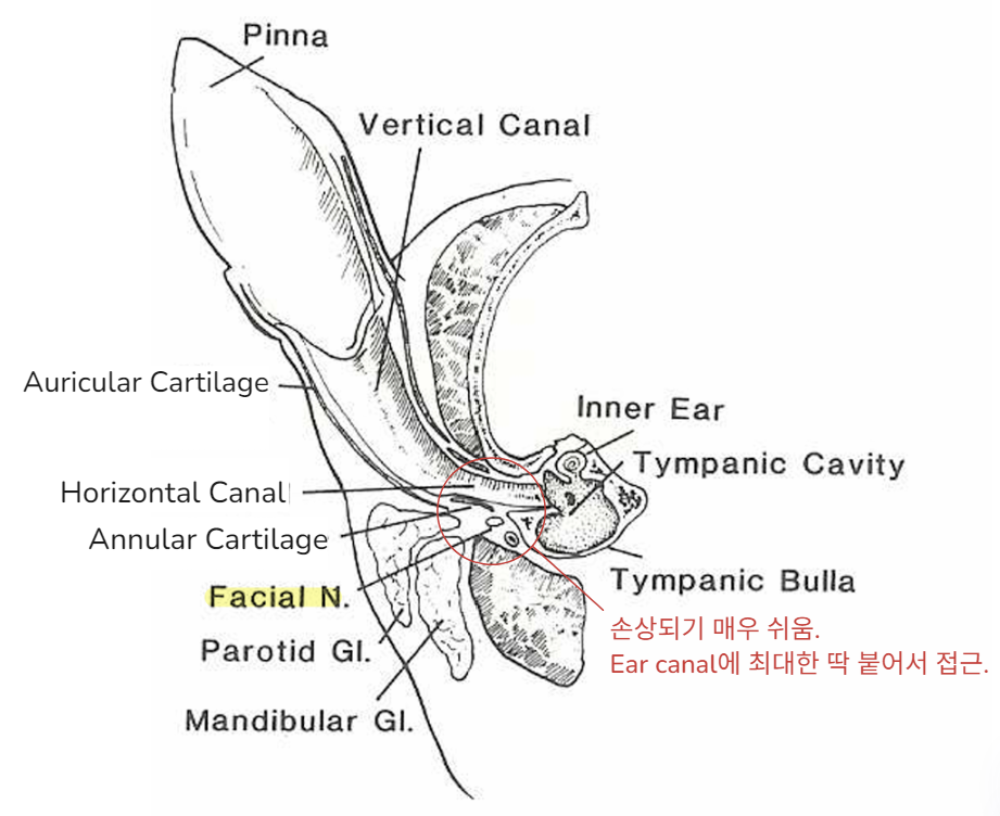 - 전이도 절제, bulla 뼈를 자르고 수술할 때도 facial n. 와 maxillary a. 주의해야.