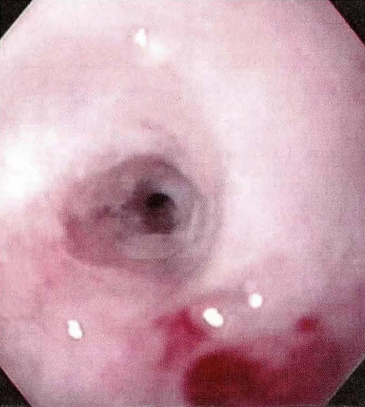 ![]() | 내시경이 잘 통과 못하고 턱 막힘. 그러다가 점막이 벗겨져 출혈 발생. |