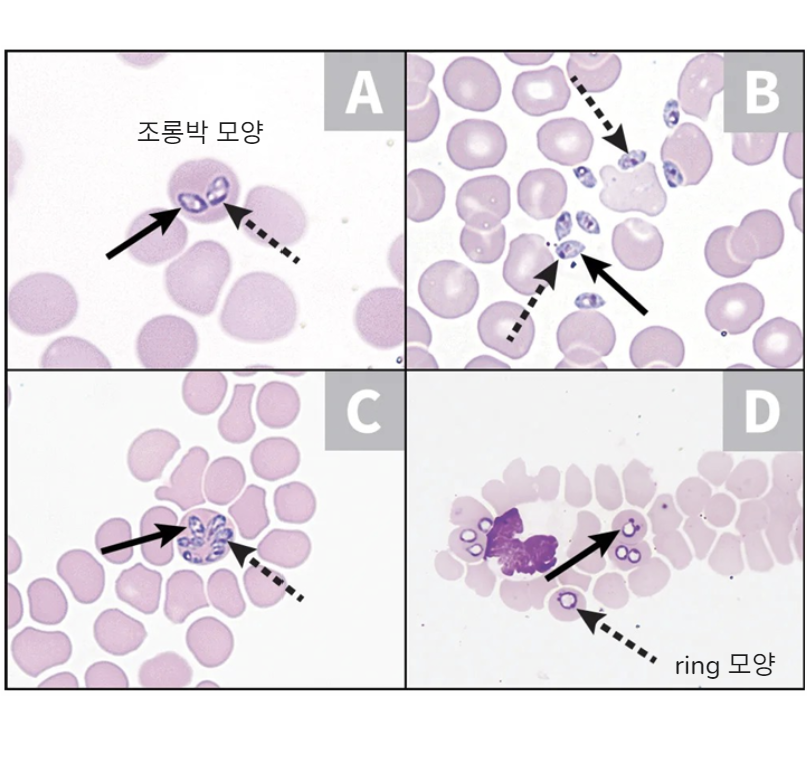 Babesia ๋ฅผ ๊ฐ๋ณํ๋ ๋ฐ ๊ฐ์ฅ ์ข์ - RBC์ ๊ธฐ์, ์ ํ ์ํ ํ์.