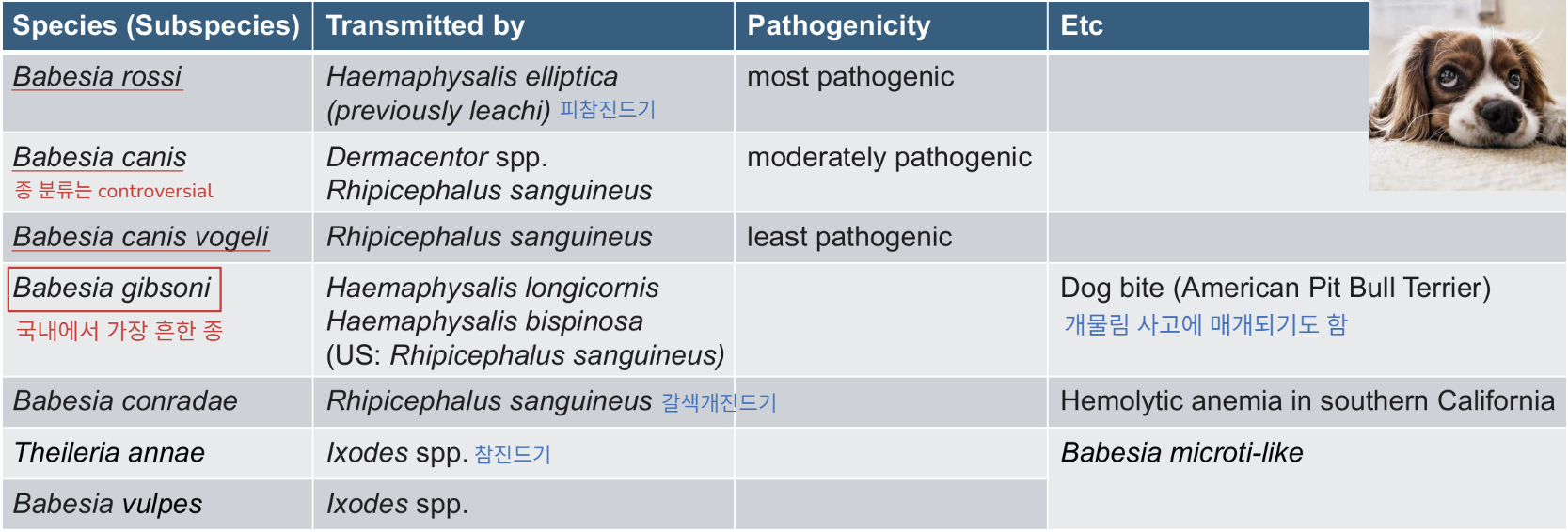 - B. canis, B. vogeli, B. gibsoni (pathogenic strains) ์ ๊ฐ์ผ๋ ๊ฒฝ์ฐ,