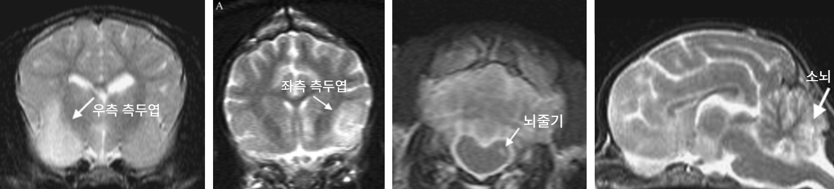 | ์์์ ์ถ๋ก | โ Young โ History : Mild to severeํ ์์ฅ๊ด ๋ฐ ํธํก๊ธฐ ์ฆ์์ด ์ ๊ฒฝ๊ณ ์ฆ์์ผ๋ก ์งํ๋จ โ ํ์ก ๊ฒ์ฌ : lymphopenia, mild thrombocytopenia (๋ฆผํ๊ตฌ, ํ์ํ ๊ฐ์) โ ๋ฐฉ์ฌ์ ๊ฒ์ฌ : interstitial & alveolar infiltrates (๊ธฐ๊ด์งํ๋ ด) โ MRI : T2-Weighted image์์ ๊ตญ์ํ๋ hyperintense ๋ณ๋ณ๋ค ๊ด์ฐฐ (์๋, ๋์ค๊ธฐ, ์๋, ์ฒ์ ๋ฑ) ใ* MRI์ ๋ณ๋ณ ์๋ ๊ฒฝ์ฐ๋ ์์ ใ ![]() |