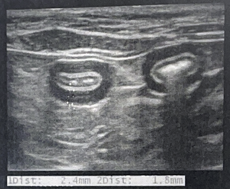 - Target pattern : 가운데 혈류 공급이 안 되어 괴사 → 가운데는 hyperechoic해짐