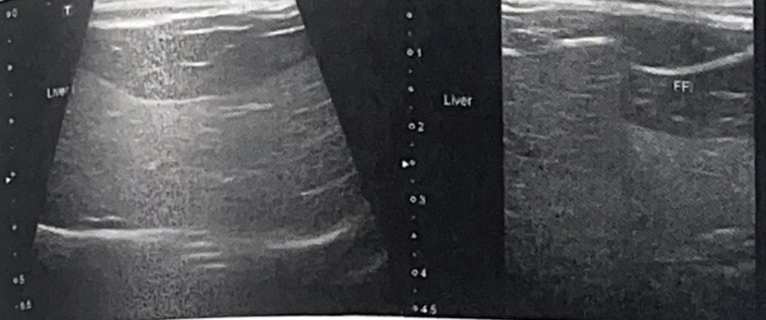 - 간: Hepatic echogenicity의 증가, hepatomegaly