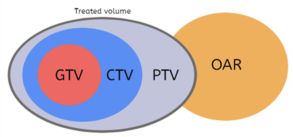 ![]() 종양 세포 방사선량은 늘리고, OAR 선량은 최대한 줄여야 함. | - GTV (gross tumor volume) - CTV (clinical tumor volume) - PTV (planning tumor volume ⇒ GTV < CTV < PTV |