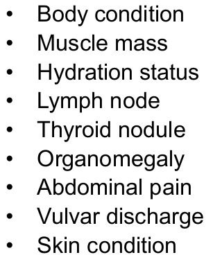 | Urinalysis | - Glycosuria : ๋น๋ง ๋๊ฐ - Proteinuria - Pyuria, Bacteriuria |