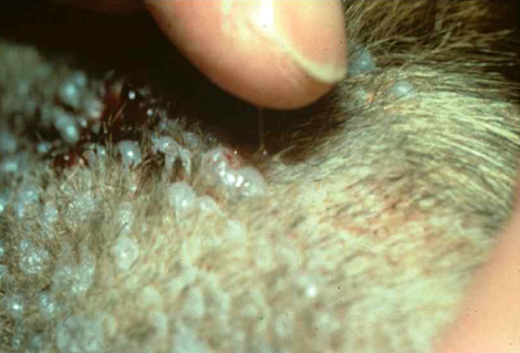 - 몸통 쪽 털이 숭덩 빠지고, 과색소침착