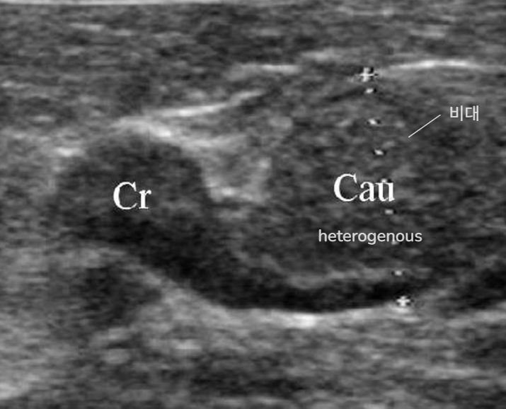 | MRI : ์ฟ ์ฑ๋ง ์๋ ํ์์์ ์ ์ฐ์ง X - ์ ์ข โ ๋ํ์์ฒด ๋น๋ (P:B ratio < 0.31) - ๋ํ์์ฒด ํฌ๊ธฐ๊ฐ 1cm ์ด์์ด๋ฉด ์ ๊ฒฝ์ฆ์ ๊ฐ๋ฅ | ![]() |