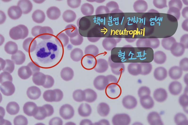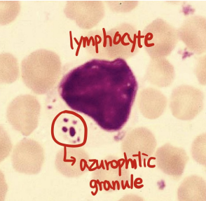 ![]() ![]() | - ๊ฒํธ๋ฅธ ํต์ด ๊ฑฐ์ ์ฐจ์งํ๊ณ ์์ - azurophilic granule์ด ๋ณด์ด๊ธฐ๋ ํจ |